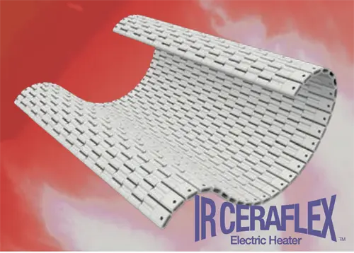 The IR Ceraflex Heater is a flexible infrared heater constructed from ceramic insulators and heating wire, capable of operating up to 1,000°C. It is ideal for high-temperature and complex-shaped applications.